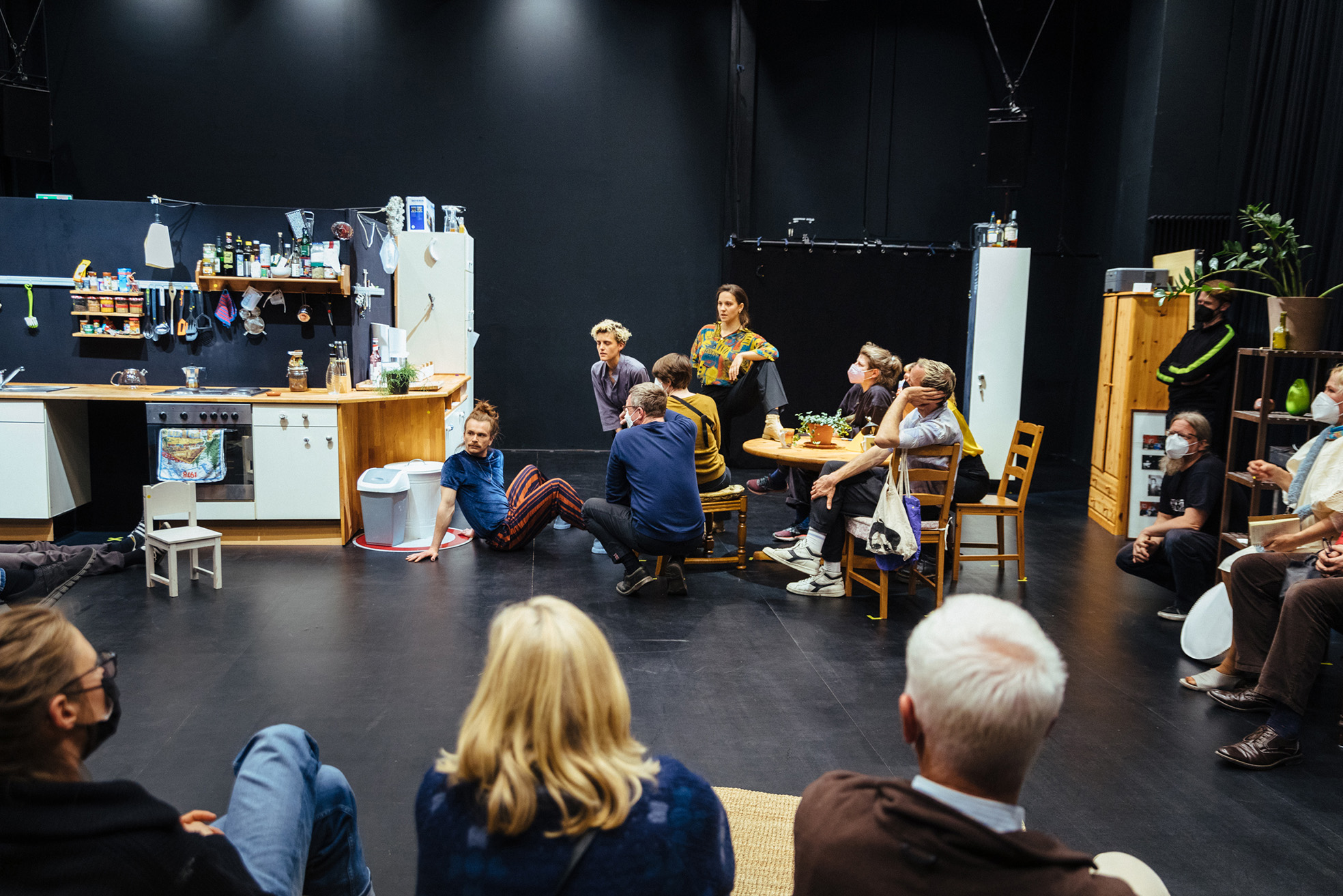 The kitchen is versatile. It is a protected meeting place for the family and the center of a home. A place of self-realization and expression of personal lifestyle, but also a mirror of social life and social attributions. And: The kitchen is again and again the starting point for artistic contemplations. The kitchen of Robert, Kati and Marius is the starting point for the director and sculptor Marlin de Haan from Düsseldorf. For K.I.T.C.H.E.N. she links the documentation of the time when the three dancers' lived together and the present. Robert, Kati and Marius have since moved on. In collaboration with the author Helen Brecht, the sound designer Marcus Zilz and the three performers Hendrik Hebben, Marlene Helling and Josephine Kalies, Marlin de Haan created a walk-in installation on Stage II of the FFT. Here, farewell and departure, public and private, stage and kitchen space and togetherness are explored. Come in and sit down.