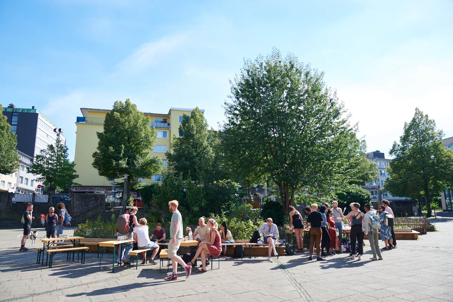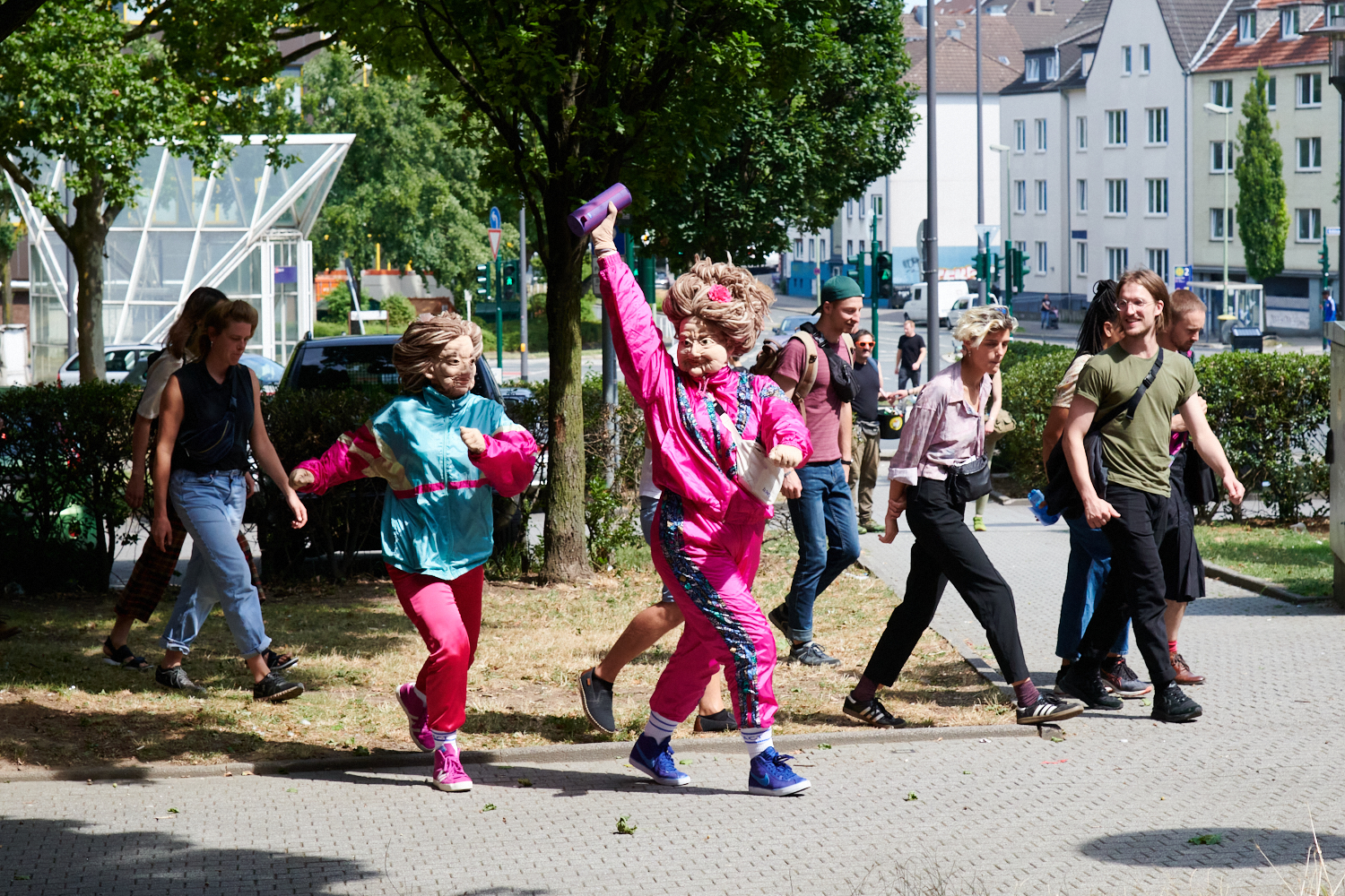 On the second day, the main event took place: The public was invited to a two-hour parcours, which led through the neighboring spaces and galleries of the co-working space. More than 15 artists presented performances, concerts and installations spread over five locations. IG Tanz Essen attaches importance to curate as a group. Every artist who wants to be involved gets the opportunity to exchange about their work or to show it. In the evening, the groups met at Weberplatz for a picnic.